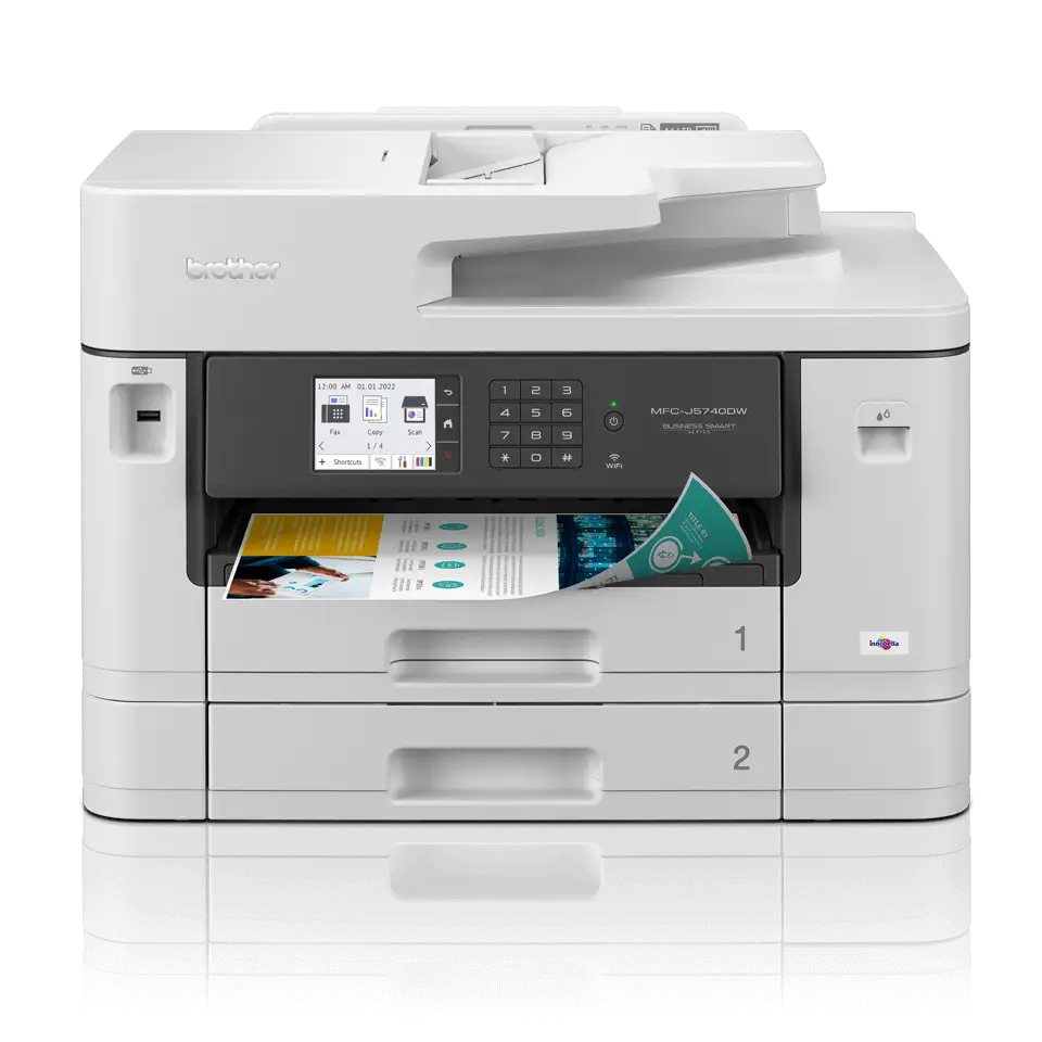מדפסת הזרקת דיו אלחוטית A3 משולבת מקצועית MFC-J5740DW של Brother פונקציונליות הדפסה (עד A3), העתקה, סריקה ופקס