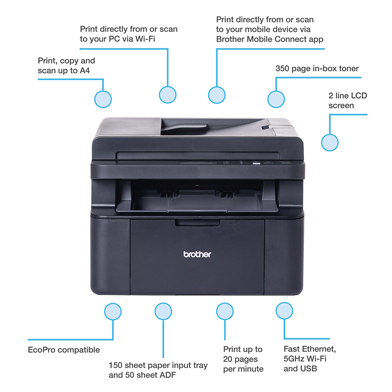 הדפסה בשחור-לבן עד 20 דפים לדקה.