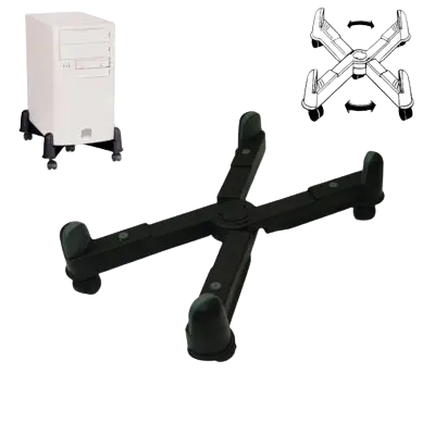 מעמד למחשב נייח בצורת X עם 5 גלגלים.