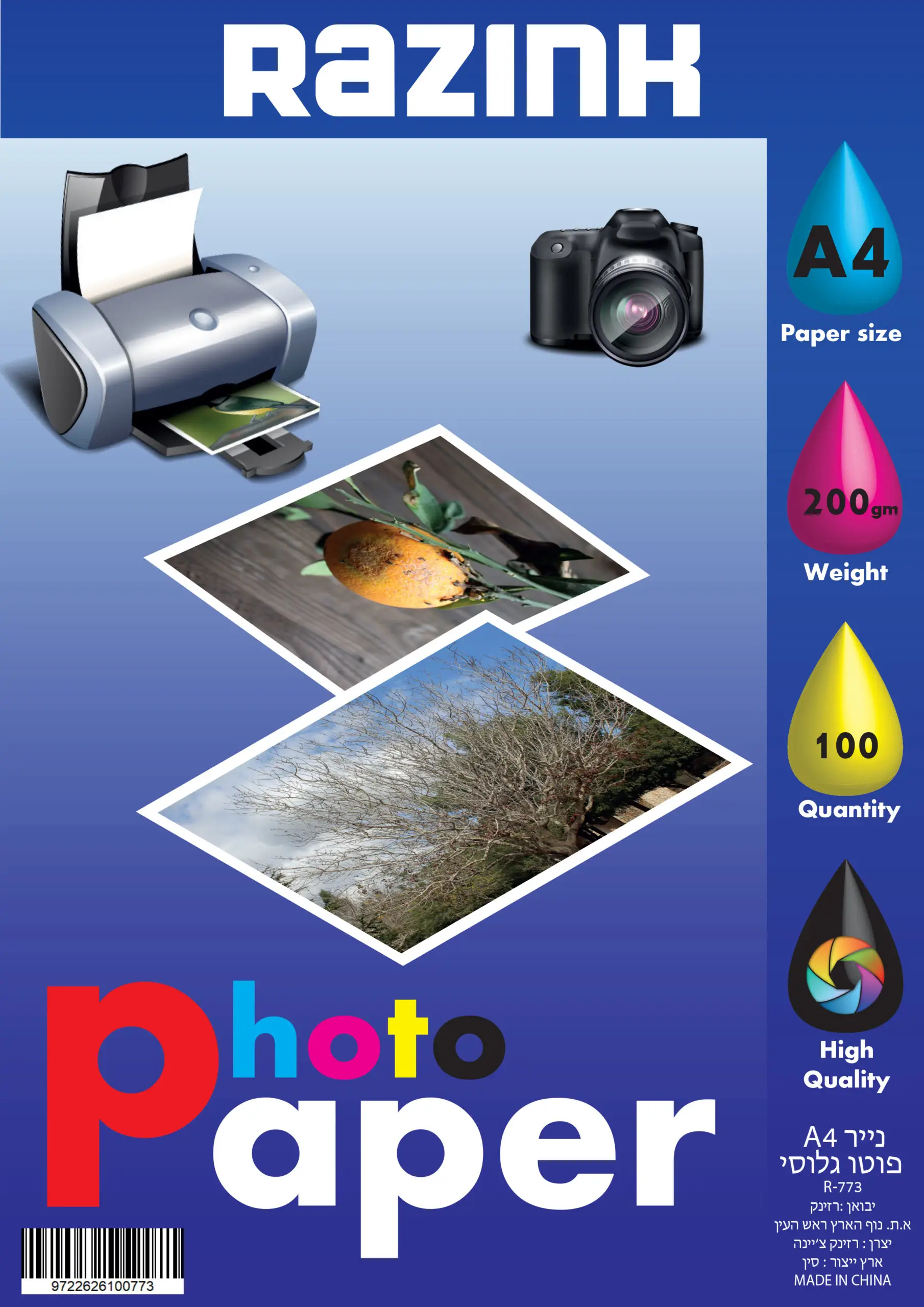 נייר פוטו גלוסי גודל A4.