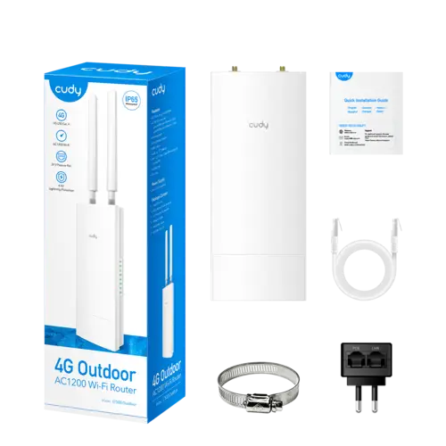 נתב אלחוטי + מודם סלולרי LTE/4G – מותאם מחוץ למבנה, שקע חשמל, IP65 Waterproof and Dustproof, VPN